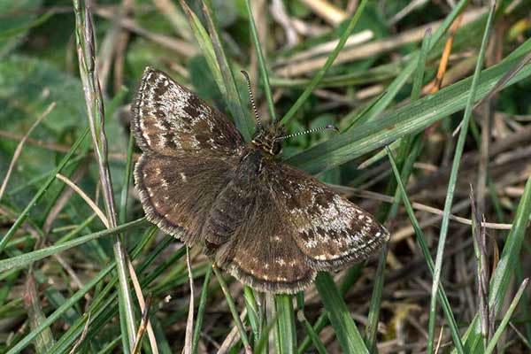 ![]() Dunkler Dickkopffalter Erynnis tages, bei Maua, Thüringen, 07. 05. 2017, UF Pyrginae, Tribus Erynnini e |