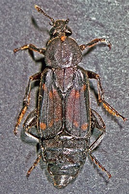 ![]() Vierfelckiger Kahnkäfer Scaphidium quadrimaculatum, KL 5 mm, Fam. Scaphidiidae |