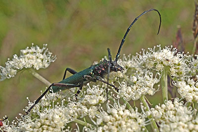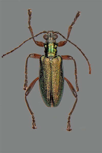 Aromia moschata, Hache-mühle, Dübener Heide, Sachsen, Famile Cerambycidae ![]() Video Schmalbock Strangalia spec., Familie Cerambycidae, UF Lepturinae ![]() Sägebock Prionus coriarus, Möhritzsch, Sachsen-Anhalt, 5.8.2013, Familie Cerambicidae, UF Prioninae ![]() Video Paarung von Schildkäfern auf Flores, Indonesien, 2002, Familie Chrysomelidae, UF Cassidinae ![]() Stachelkäfer Dicladispa testacea, KL 5 mm, Sammlung M. Hoffmann, Naturkundemuseum Leipzig, Sachsen, UF Cassidinae |