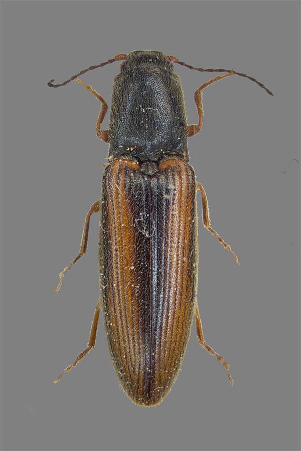 ![]() Anostirus purpureus, KL 10,5mm, Familie Elateridae, UF Dendrometrinae ![]() Athous vittatus, KL 10mm, Familie Elateridae, UF Athoinae |
