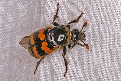 ![]() Totengräber Necrophorus spec., Möhritzsch, Sachsen-Anhalt, Familie Silphidae Sammlung Mathias Hoffmann, Naturkundemuseum Leipzig tadt Leipzig, Sachsen |
