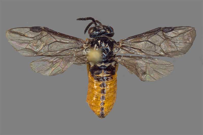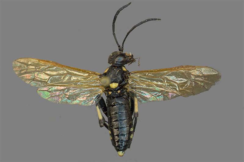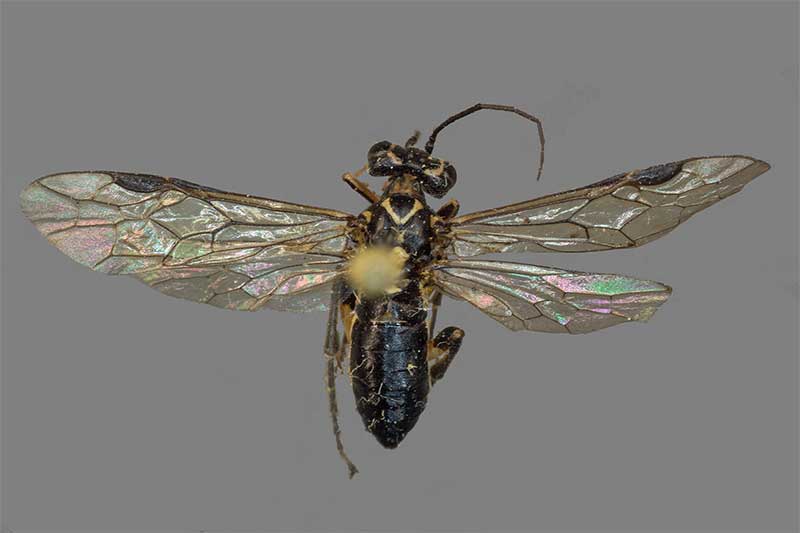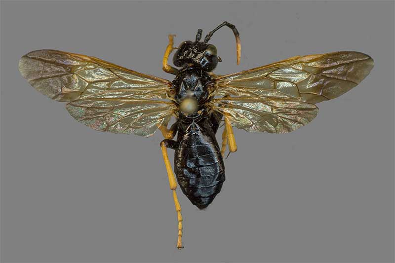 ![]() Eutomostethus luteiventris ♀, Hachemühle, Dübener Heide, VI. 1989, SpW 14 mm, UF Blennocampinae, Tomostethini ![]() Dolerus nigratus ♂, Hachemühle, Dübener Heide, Sachsen, V. 1988, SpW 19 mm, UF Selandriinae Dolerini ![]() Pachyprotasis rapae ♀, bei Frohburg, Sachsen, V. 1987, SpW 18 mm, UF Tenthredininae, Macrophyini |