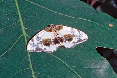 ![]() Rüsselzünsler, Papitzer Lehmlachen, bei Schkeuditz, Sachsen, 5. 7. 2017, Überfamilie Pyraloidea, Familie Crambidae ![]() Ulmen-Harlekin Abraxas sylvata, Fam. Geometridae |