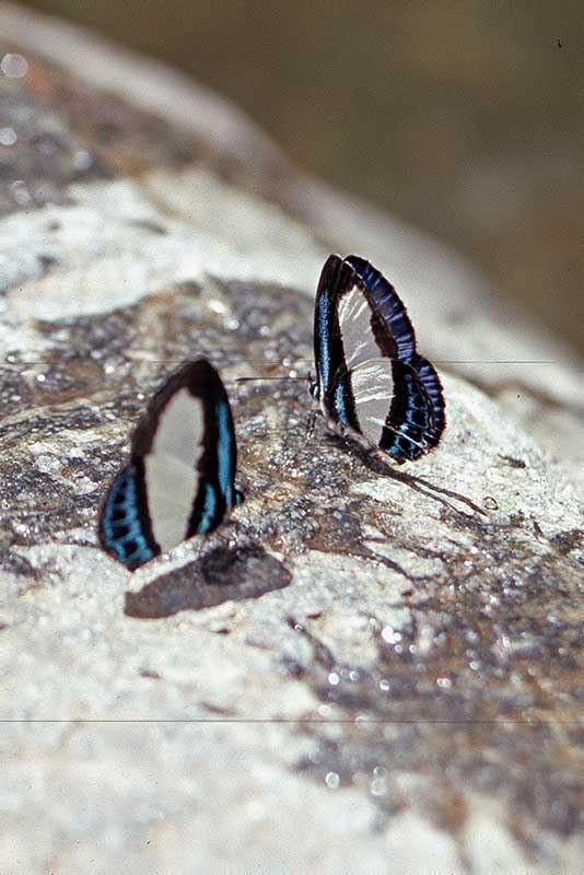 ![]() Bläulinge Bläulinge an Bach am Mount Cycklop Psychonotis spec., Bach am Mount Cyclop, West-Papua, Indonesien, 1999 Familie Lycaenidae, UF Polyommatinae |